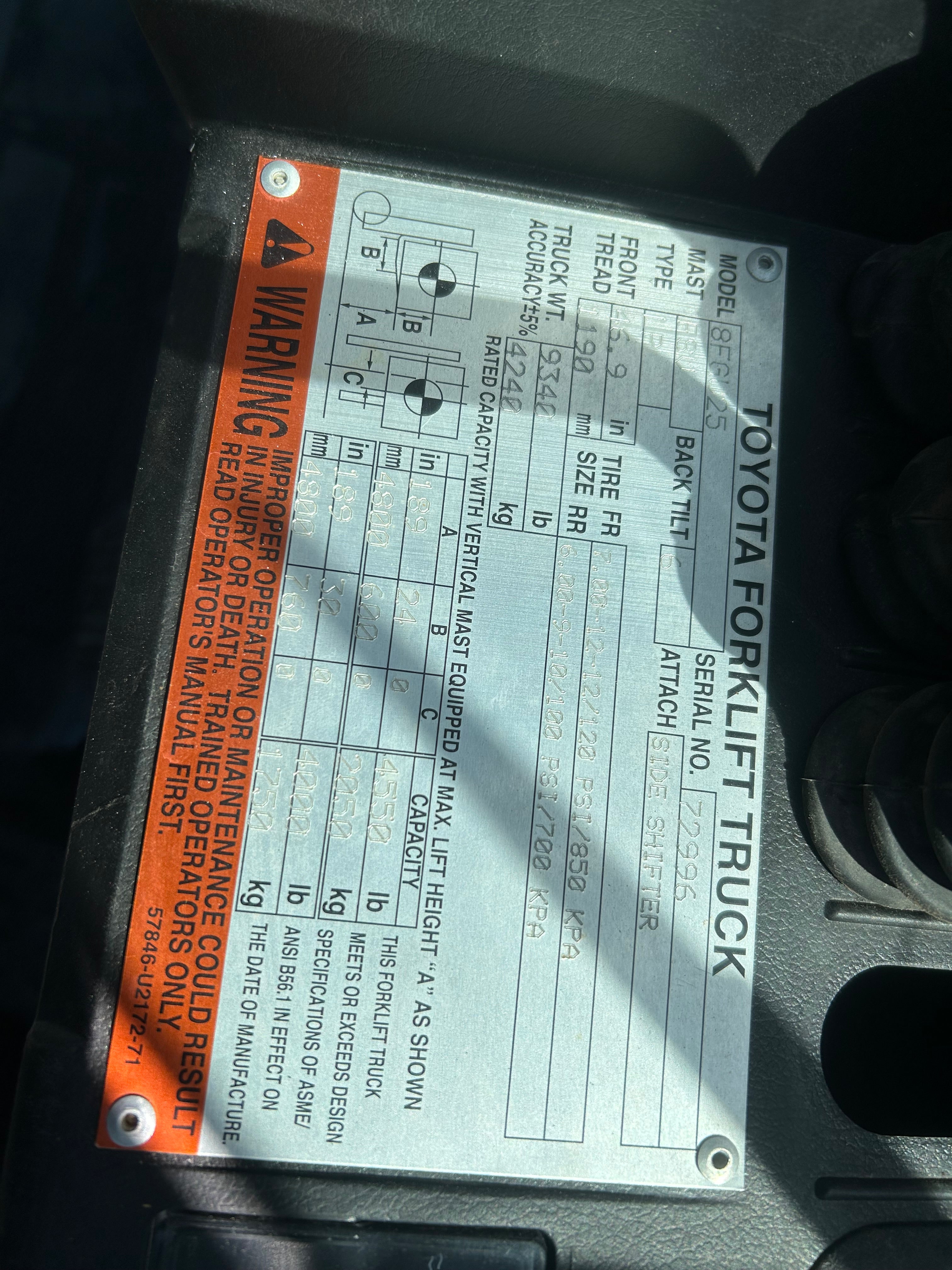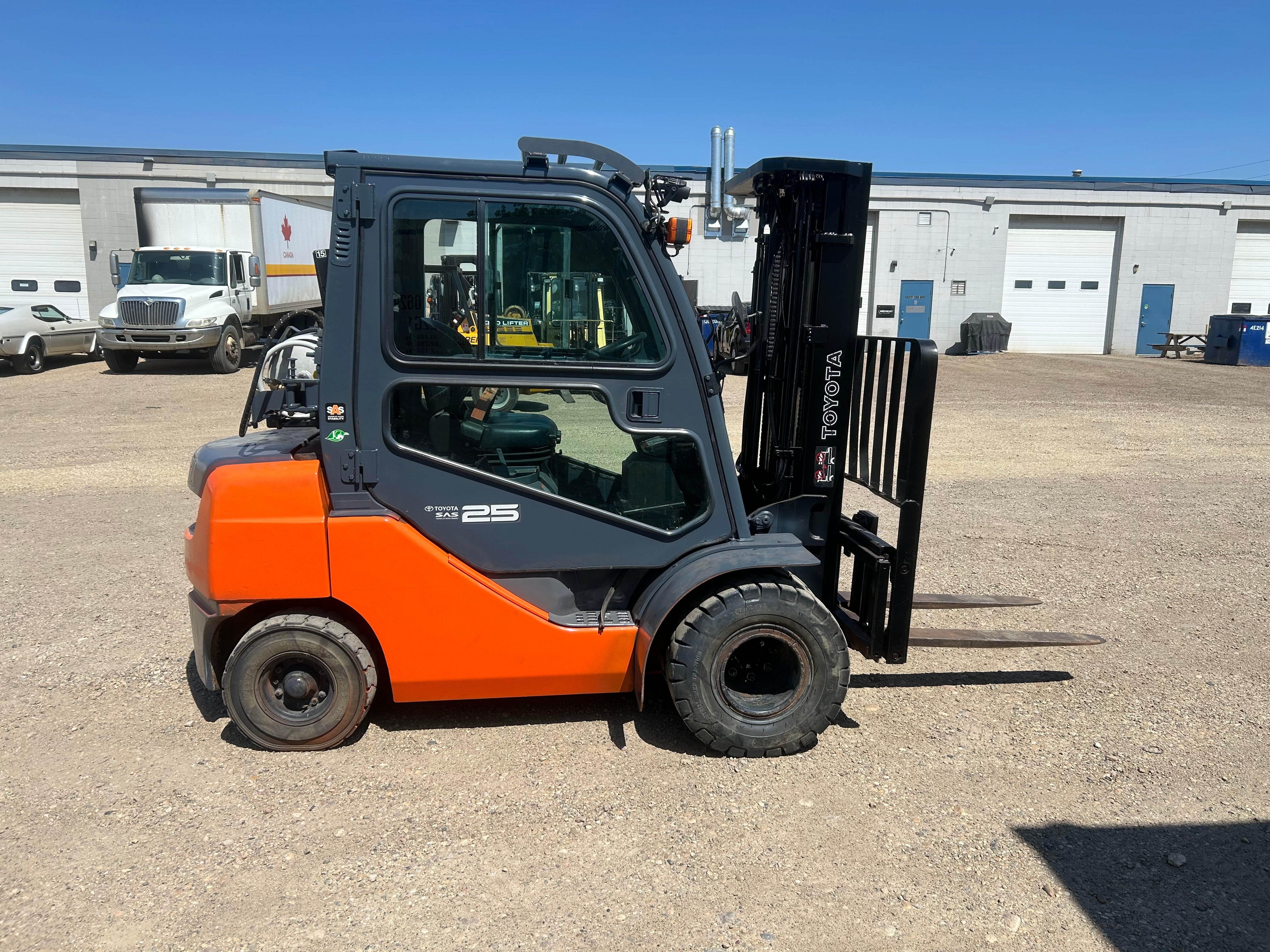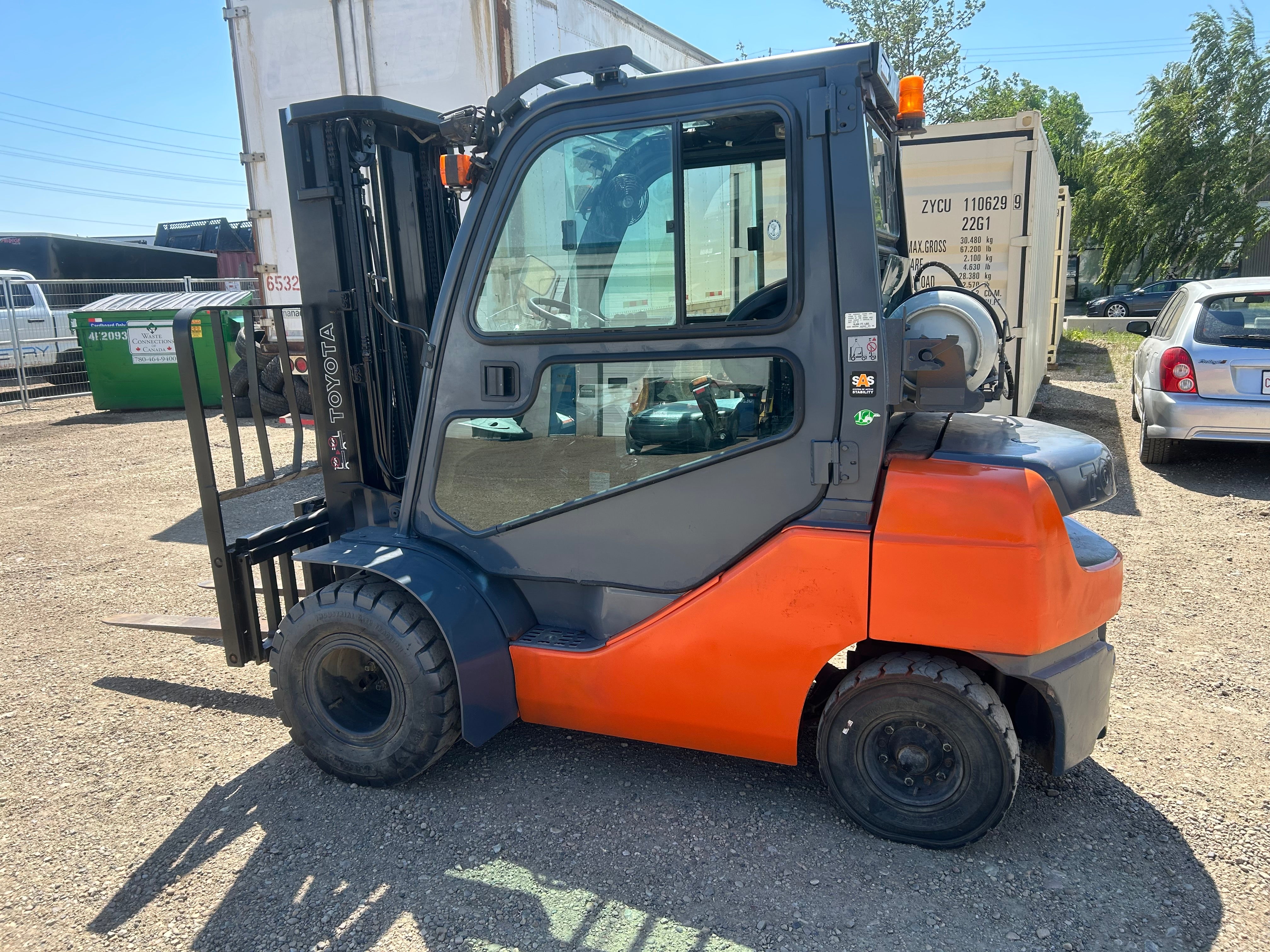 Comments: Comes with forks and propane tank, it has a side shift , heated cab , front dual tires